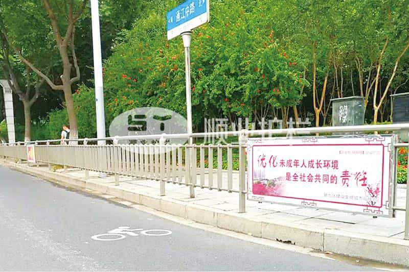 1、道路側邊的隔離,在於對人流、車(chē)流明示有序。